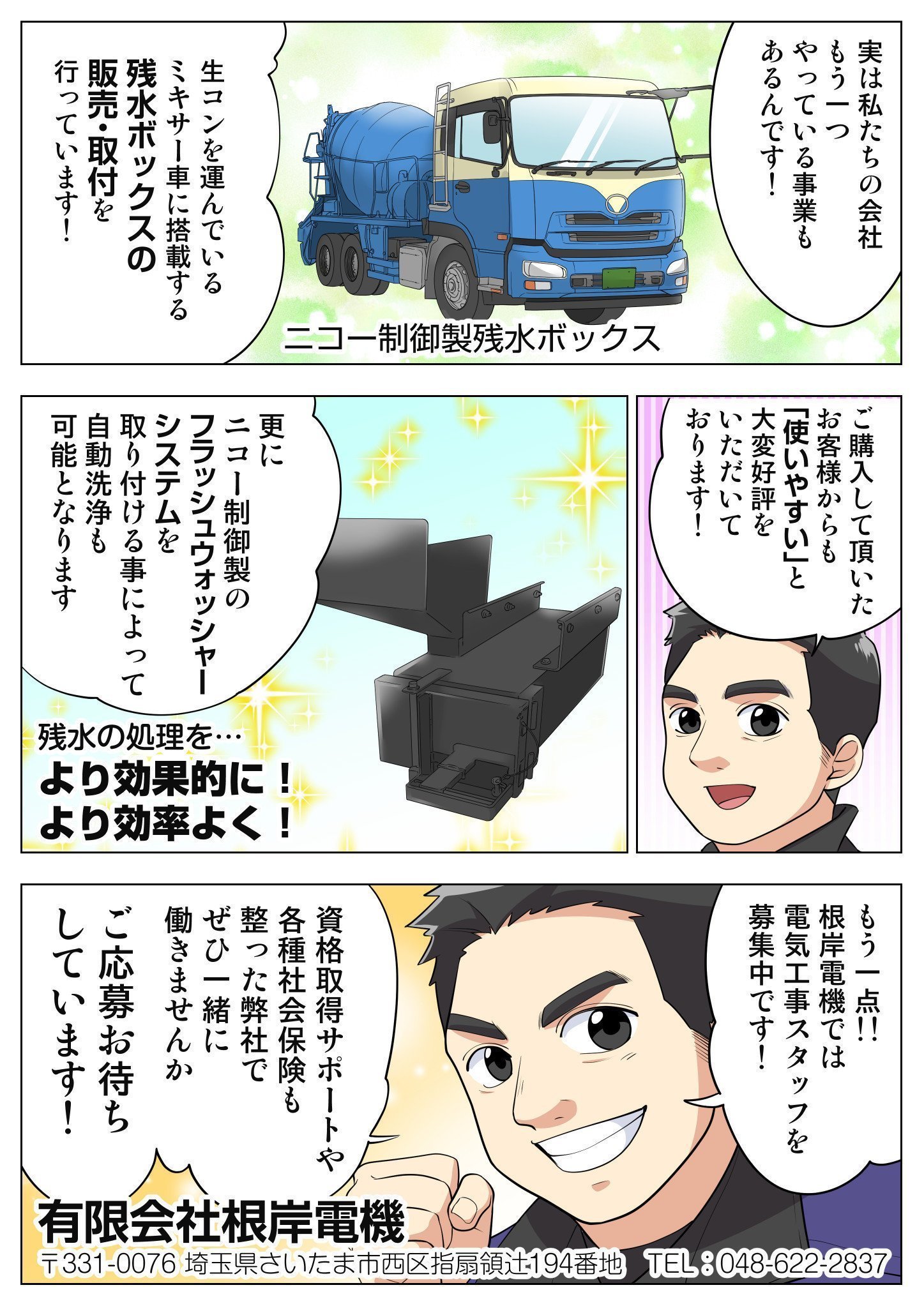 弊社はニコー制御社製のミキサー車残水処理ボックスの取付も承っております。一気に残水処理ができるニコー制御社製の残水処理ボックスをぜひご活用ください。